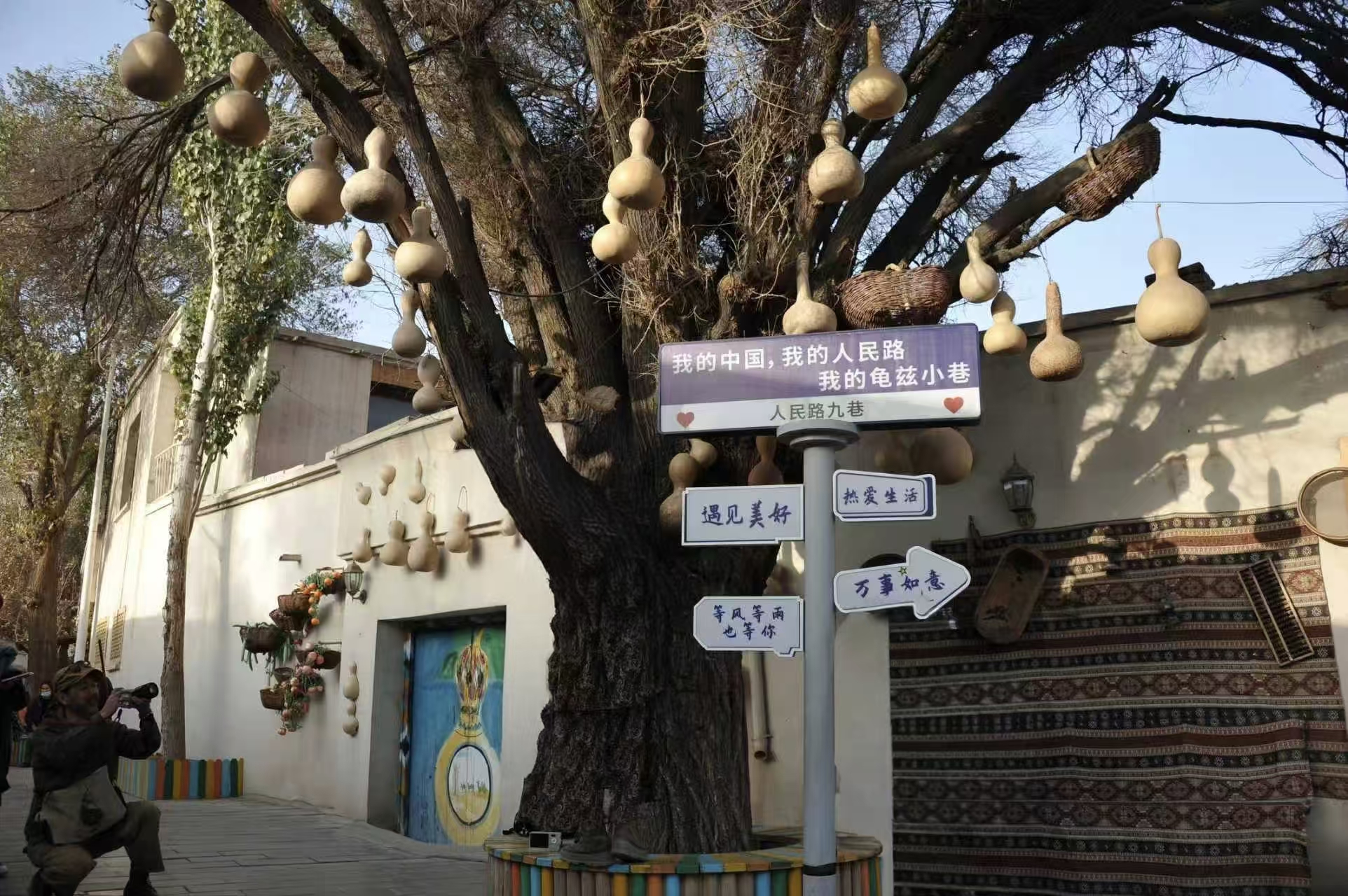 龟兹小巷,光听名字就带着西域的浪漫。作为古龟兹国故地的“活名片”,它曾是汉唐安西大都护府的治所所在,丝路商队的驼印、各族商贾的笑谈,都藏在青石板的褶皱里。如今走进巷口,高大古树筛下斑驳光影,晚清的木门与民国的花窗对望,连墙面斑驳的痕迹都成了岁月的注脚。可别以为这里是“只能看”的老房子——传统街巷肌理原样保留,老宅子却“活”了起来!咖啡香从雕花门楣下飘出,非遗工坊里摆着手绣挂毯,昔日的旧宅院成了文创空间,连游客都忍不住感叹:“古得厚重,新得亲切!”