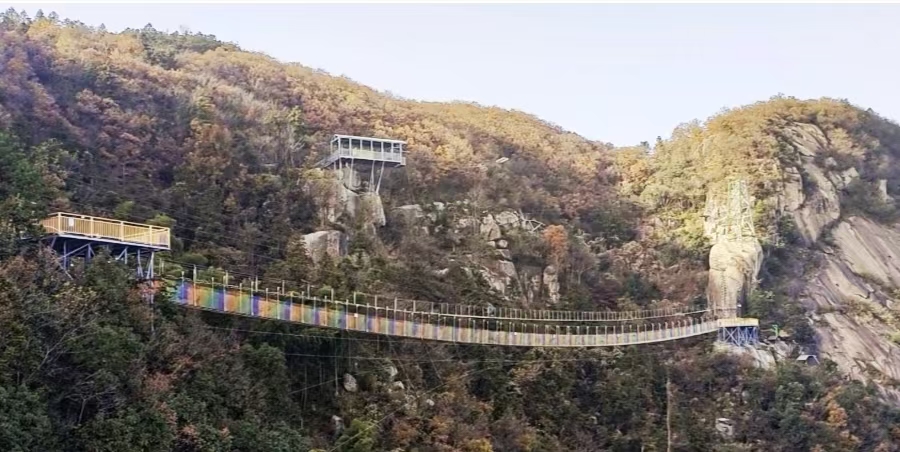 “走彩虹桥像踏在云端的琴弦!”泰亚传媒总编辑王菁野紧握安全绳,在摇曳的桥面俯瞰竹海时惊叹。这片曾被密林遮蔽的峡谷,如今因飞拉达攀岩线火爆“出圈”:全长800米的钢索沿红旗山绝壁蜿蜒,新手可挑战150米彩虹桥,勇者则直抵640米高空溜索,无人机全程跟拍记录飞翔瞬间。更让媒体团驻足的是即将开放的“网红大秋千”——两座山巅塔楼以钢索相连,一跃而下,将成为国内落差最大的勇气试炼场。