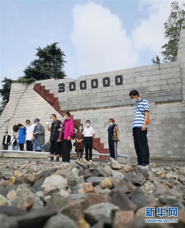 9月18日,在侵华日军南京大屠杀遇难同胞纪念馆,参观者在防空警报声中肃立默哀。 当日是“九一八”事变爆发89周年。南京市民和各地群众纷纷来到侵华日军南京大屠杀遇难同胞纪念馆,缅怀遇难同胞,以此铭记历史。 新华社发(刘建华 摄)